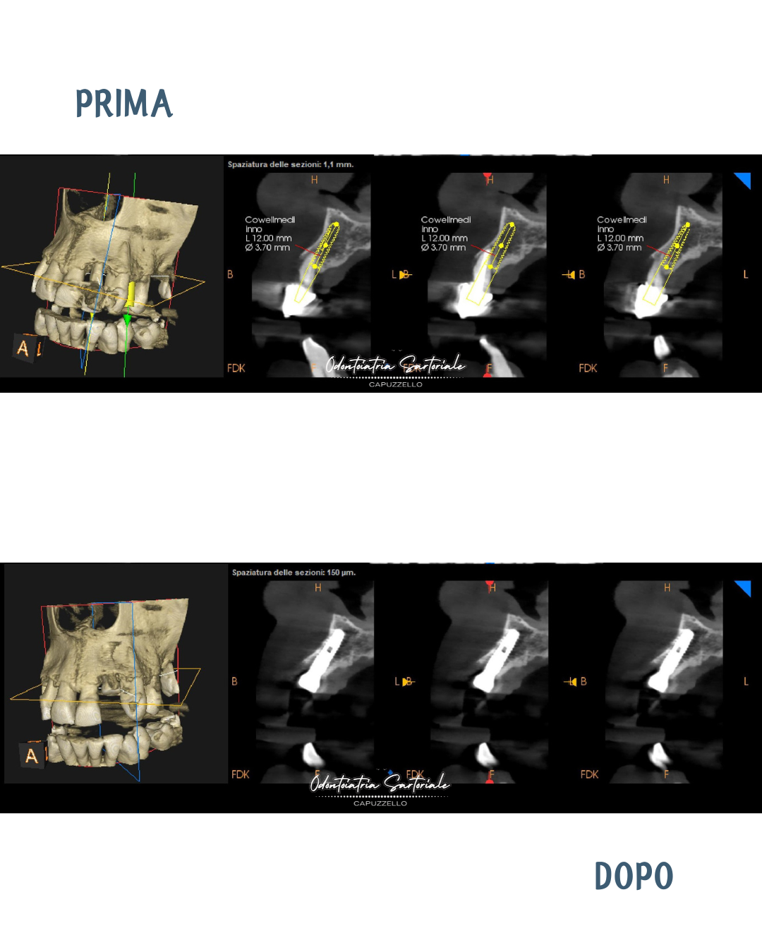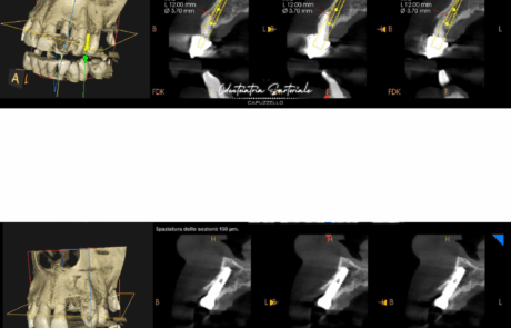 In questo caso abbiamo inserito un impianto post-estrattivo a carico immediato, guidati da una dima chirurgica digitale per lavorare al millimetro.