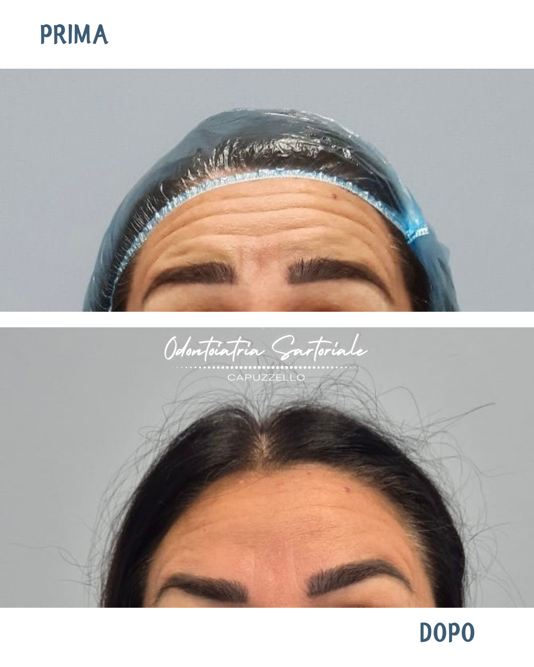 In questo caso, la dott.ssa Scalera ha lavorato su mento e fronte per restituire al viso freschezza e armonia, mantenendo la naturale espressività.