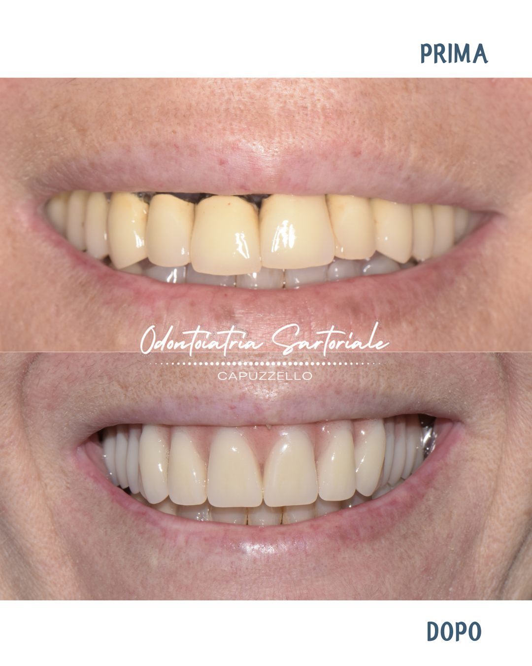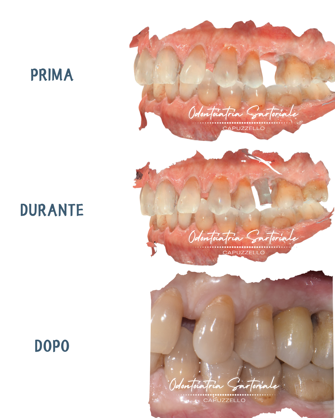 Questa paziente è arrivata in studio con una protesi ormai al termine della sua vita clinica e una parodontite non più trattabile.